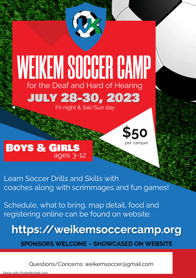 WeiKem Soccer Camp will provide an unified, positive soccer experience where an individual can learn the sport and be on the same “level playing field” as others that are deaf and hard of hearing.